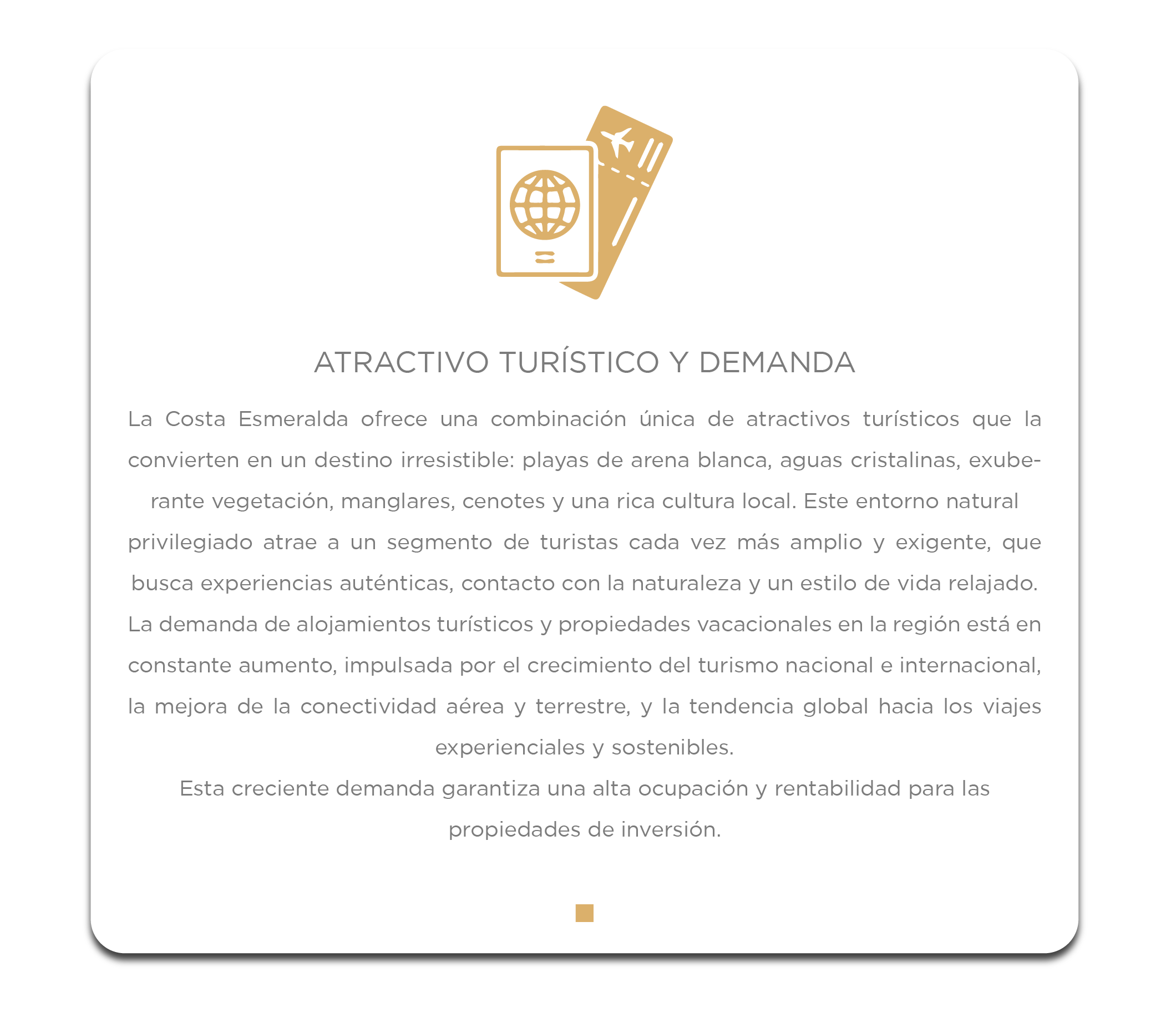 Mobadi Group es un corporativo 100% Mexicano de empresas con enfoque ecológico e innovador, dedicado al desarrollo de Ecoproyectos inmobiliarios residenciales, vacacionales y turísticos en la Costa Esmeralda de Yucatán. Fusionamos madurez e innovación para redefinir la industria inmobiliaria. Nuestro equipo está compuesto por socios con más de 35 años de experiencia en el desarrollo y gestión de bienes raíces turísticas en México, el Caribe, Centro y Sudamérica, Estados Unidos y Canadá, respaldados por un historial impecable y logros comerciales destacado